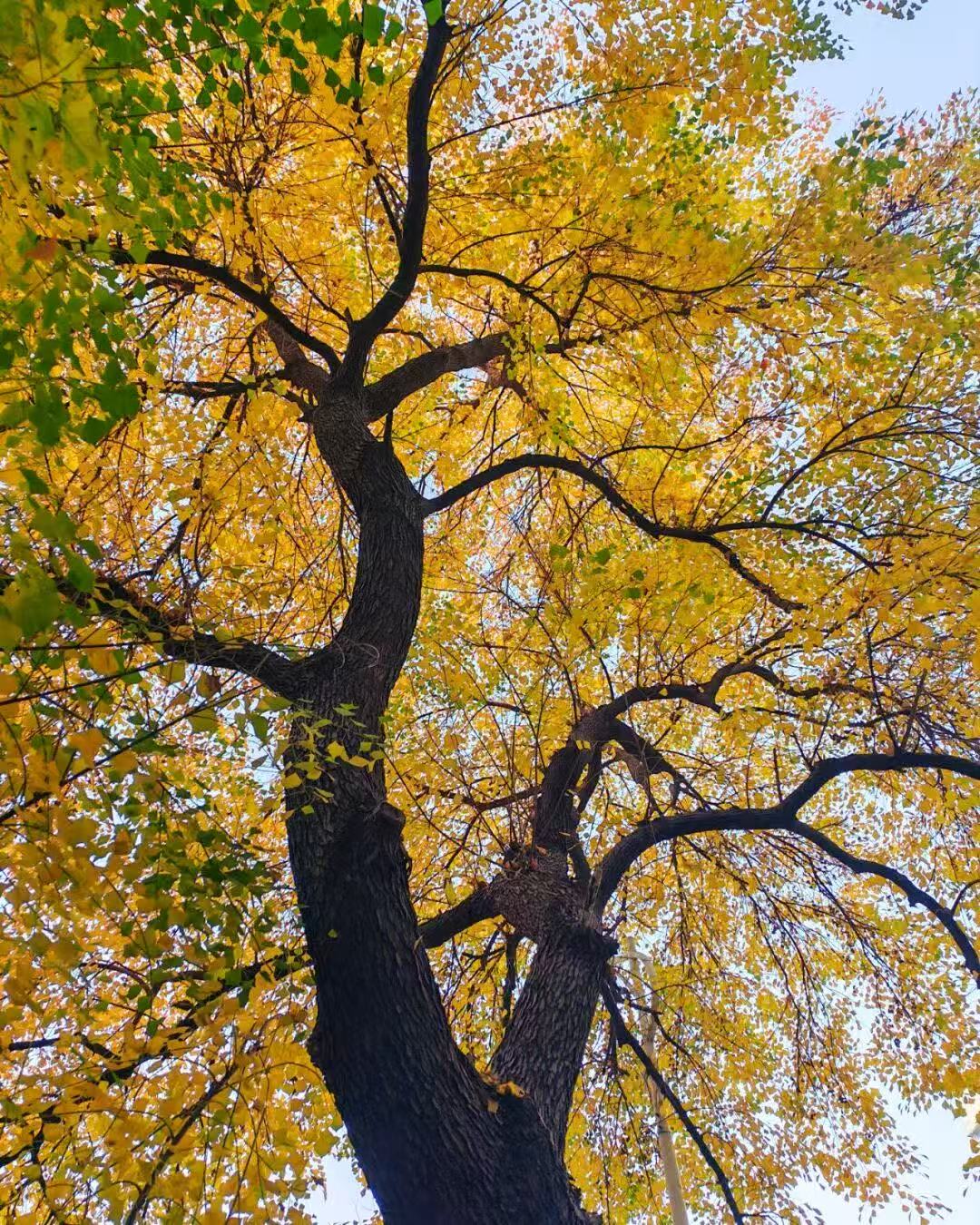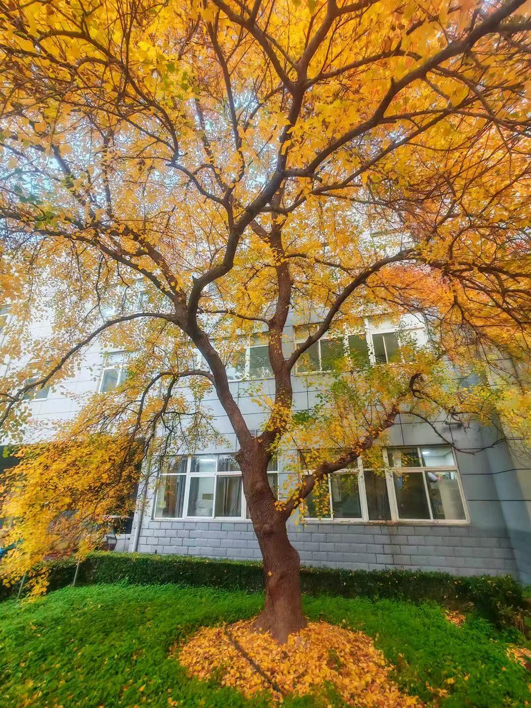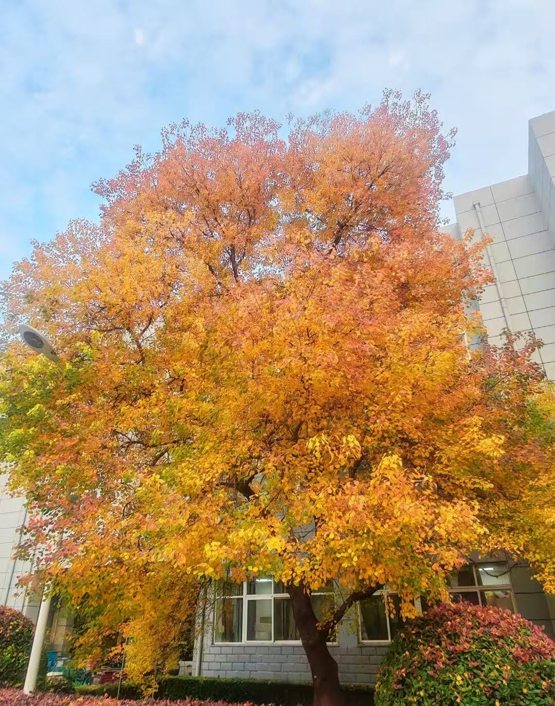 若您在初冬时节步入滑县人民医院,很难不被院内一角所吸引:那棵伫立的乌桕树,正披着五彩的霞衣。深红、明黄、赭褐与尚未褪尽的青绿,在枝头交织晕染,宛如一幅浑然天成的油画,为这个救死扶伤的场所,平添了几分静谧的诗意。