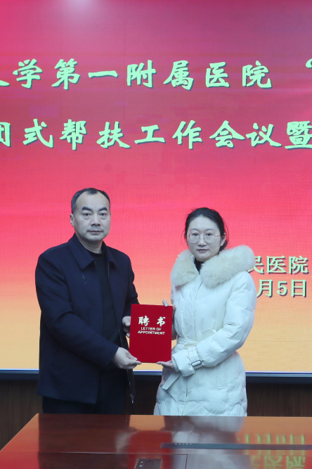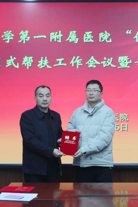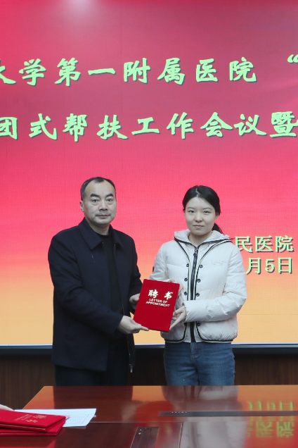 会上,郑大一附院选派的三名专家正式受聘开展为期一年的帮扶工作,分别是心血管内科主治医师、医学硕士朱书艺,老年综合科主治医师、硕士生导师唐秘博,神经外科主治医师、医学硕士张青德。