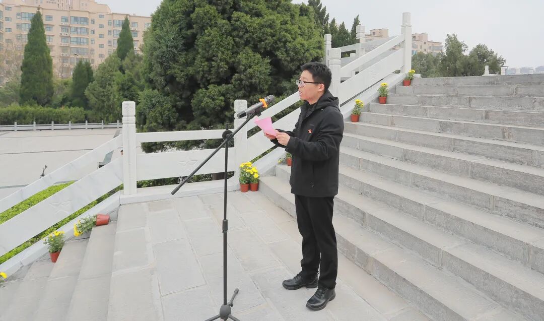 仪式在激昂的《中华人民共和国国歌》中拉开帷幕,铿锵有力的旋律激荡人心,凝聚起全体人员奋进前行的力量。随后,武志宇副院长缓步走向烈士纪念碑,代表全体参与人员敬献花圈,并仔细整理挽联,以最崇高的敬意,寄托对革命先烈的深切缅怀与无限追思。